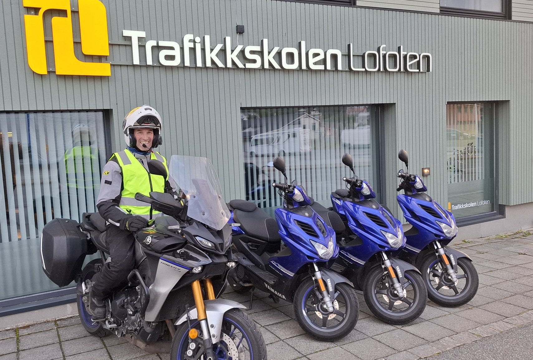 Vi tilbyr mopedundervisning klasse AM146 til våre elever, med nytt utstyr! Vi har kjøpt tre mopeder Yamaha Aerox og en motorsykkel Yamaha MT-07, i tillegg til hjelmer, bekledning og kommunikasjonsutstyr til elevene.